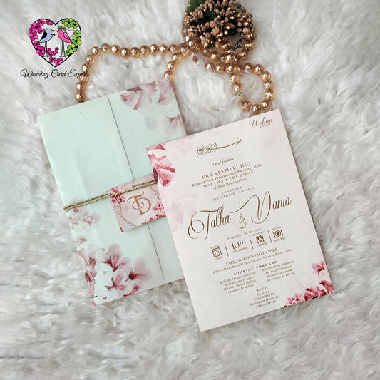 Custom Digital Printed Flat Pakistani Wedding Invitation with Floral Design & Envelope | Wedding Cards Pakistan